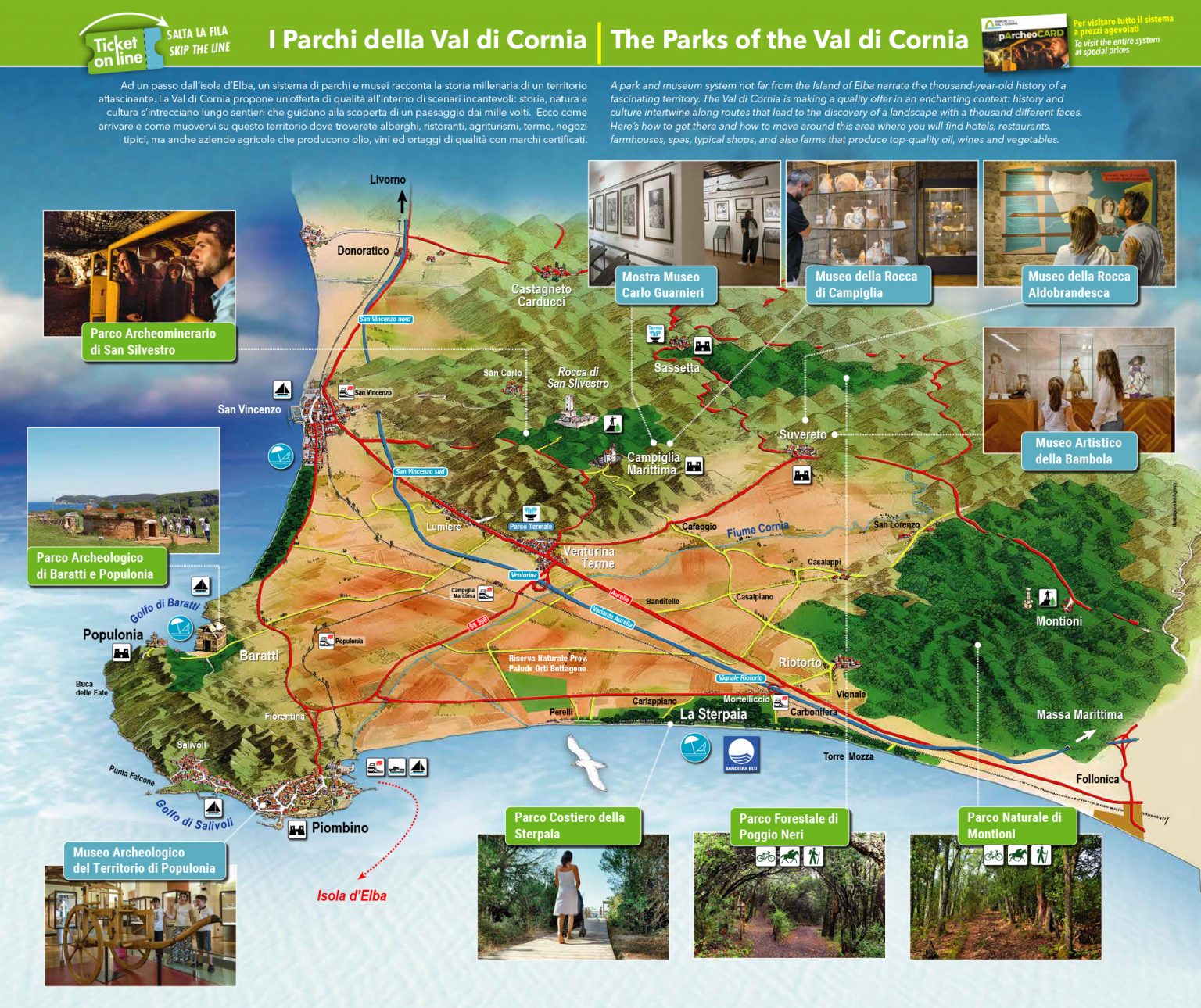 Visualizza la mappa del Sistema dei Parchi della Val di Cornia.